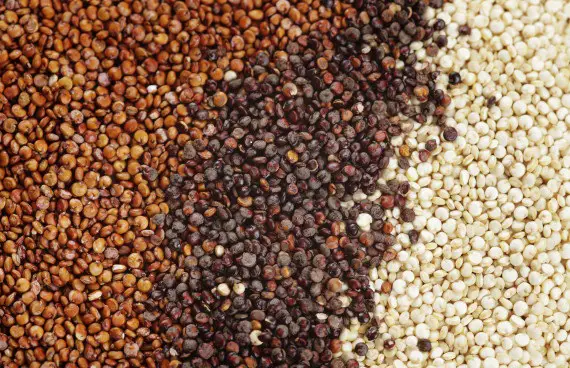 Embora a semente de quinua branca seja mais fácil de encontrar, também há quinua vermelha e quinua preta.